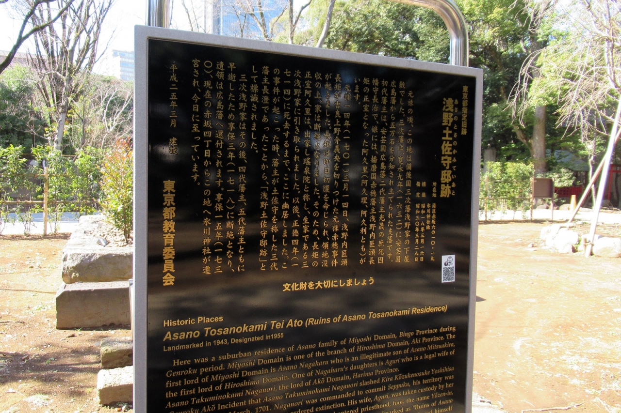 幼い頃、時代劇のド定番といえば赤穂事件を題材にしたものでしたので、今でも阿久里という名前を聞いた瞬間に浅野内匠頭が浮かぶほどです。そんな方のご実家に「赤坂氷川神社」で偶然巡り合うことができました。かつての面影は一切なく、ただ案内プレートだけでしたが、さすが赤坂といった出会いになりました。