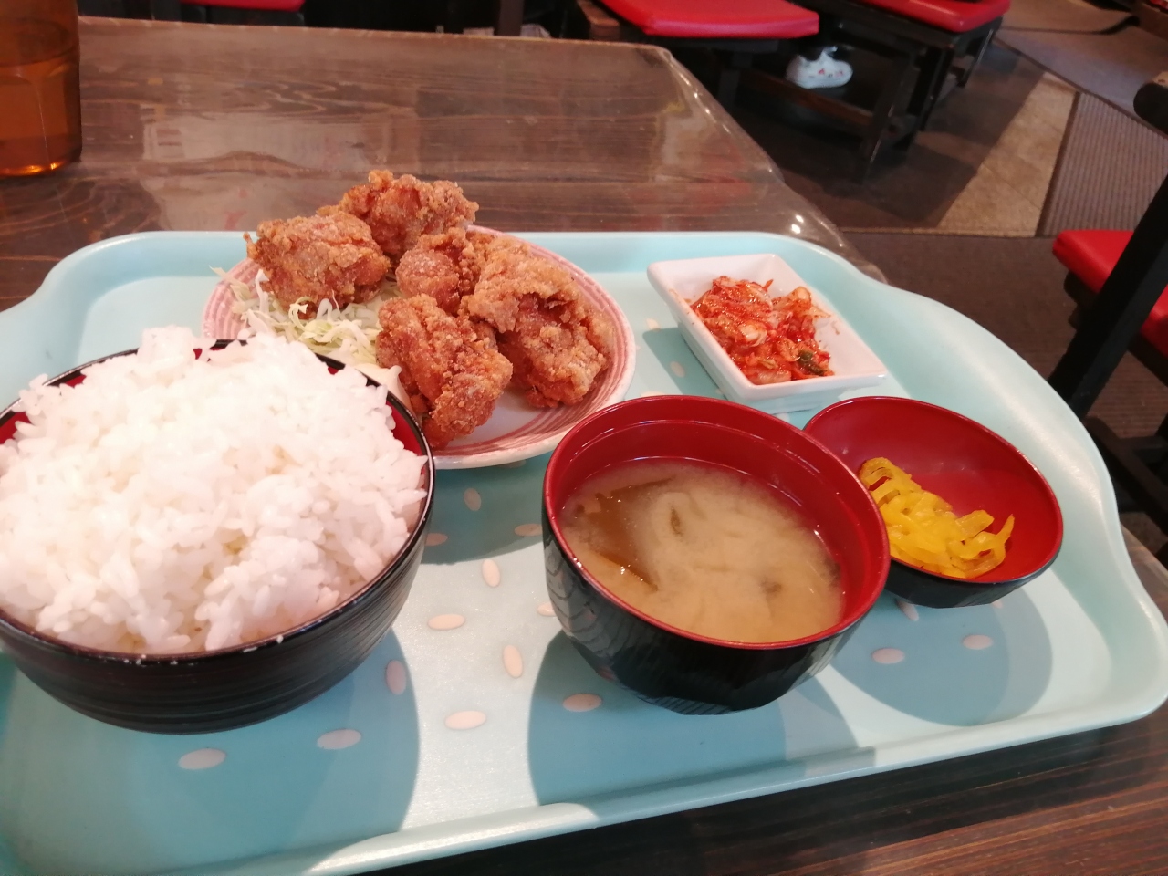唐揚げ定食はボリューム満点です。でも、味は、そんなにおいしくないですが、600円(税込み)ですからね。おいしくいただきました。