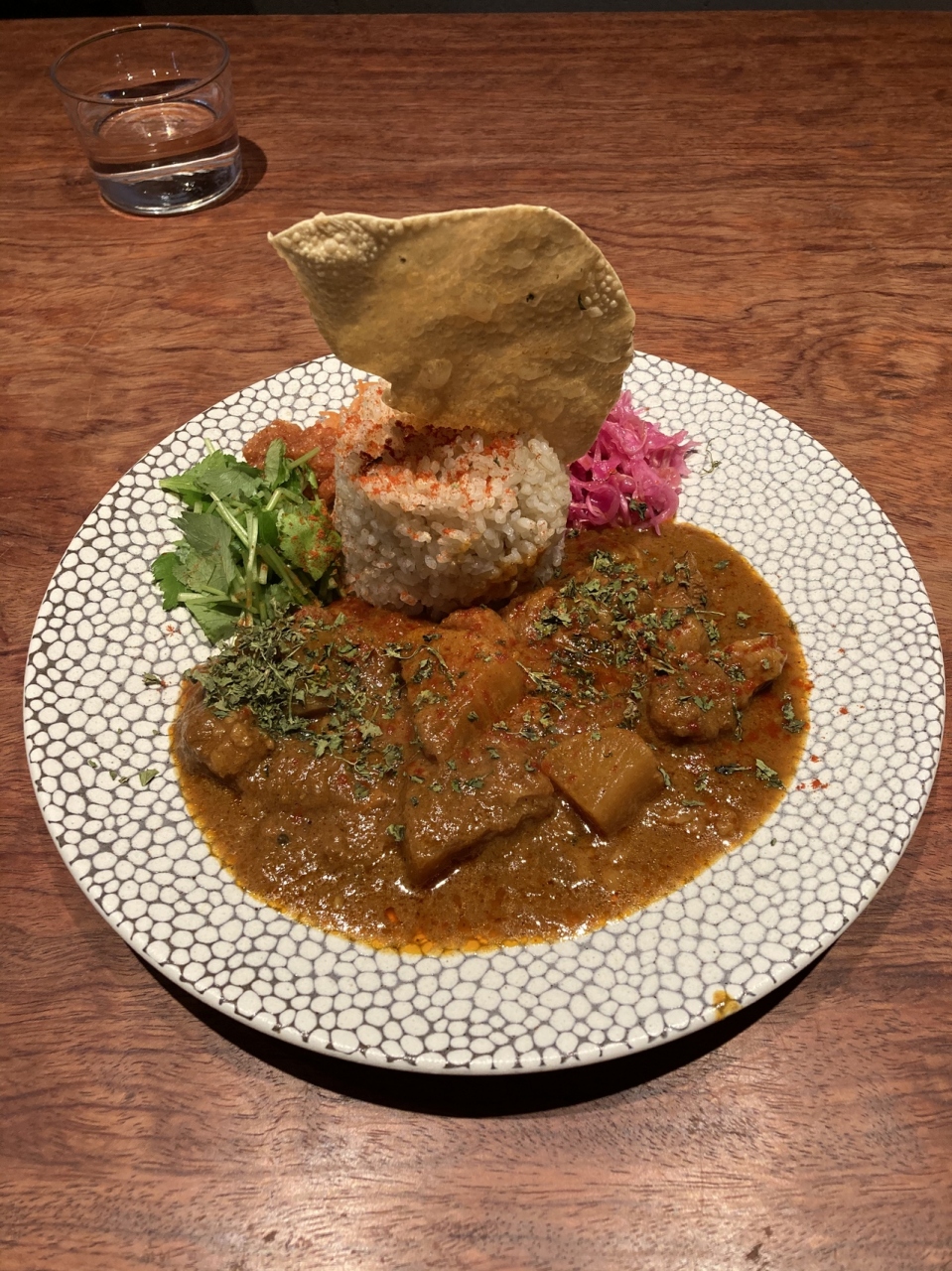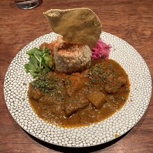 近くのカフェ目当てで出掛けて行きましが行列であきらめた所、すぐ近くに美味しそうなカレーの店を発見して入りました。今日の日替わりカレー、牛肉と大根のカレーを頂きましたが大満足でした。小麦粉を使わない本格的なスパイスカレーを堪能しました。