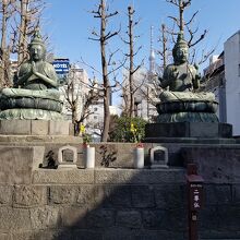濡れ仏の名で知られる二尊仏は、貞享4年8月に、江戸時代初期に神田鍋町の太田久衛門正儀によって作られた。