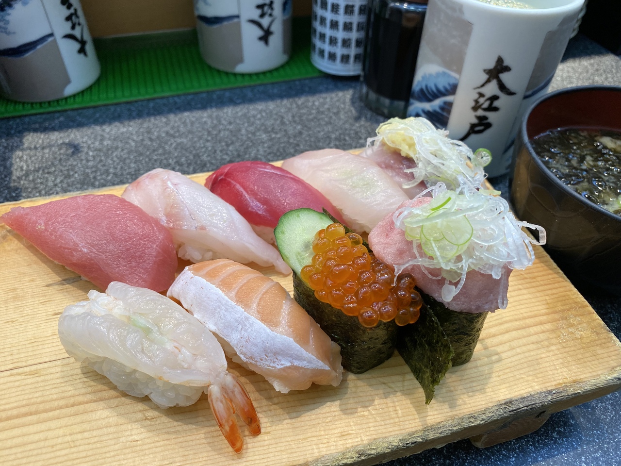 池袋駅東口のゴミゴミとしたところにあるお寿司屋さんです。回る寿司ですがランチはセットもあります。なんと600円なので、ちょっとお寿司が食べたくなった時にピッタリ!スーパーの惣菜の値段で本格的なお寿司と、美味しい海苔のお味噌汁が楽しめます。