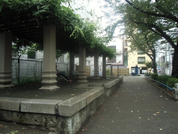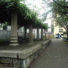 藤棚の下にベンチがあるなど、社会人の休憩にもよい場所です。