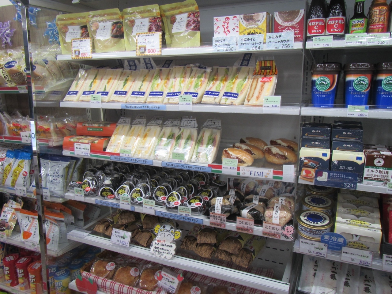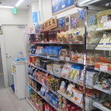 お菓子や飲み物、おにぎりや手ごろな内容・価格のお弁当、お酒のおつまみ類などを売っています。