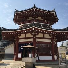 南大門前を通り右前方にあります。朱色が鮮やかな八角形のお堂で、どことなく異国風な建築が特徴的です。北鐘楼に対して南鐘楼と呼ばれていますが、正式名称は鯨鐘楼といい、聖徳太子の御霊を引導鐘によってお慰めするための回向所です。お彼岸の際や、大晦日などでは実際に鐘を鳴らすことができるそうです。