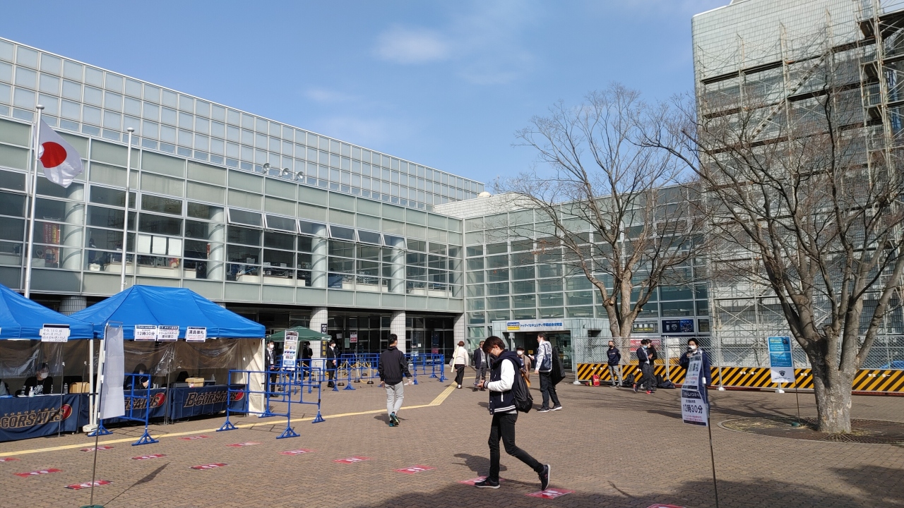 バスケの「横浜ビー・コルセアーズ」の第二ホームアリーナとして観戦に行くのだが、公園内にある和庭園は秋は紅葉、春は桜の景色を楽しむことができ、また中央の芝生公園には家族連れが多数集まり憩いの場となっている。またスタジアムの方は「湘南ベルマーレ」のホームとして使われているそうだ。