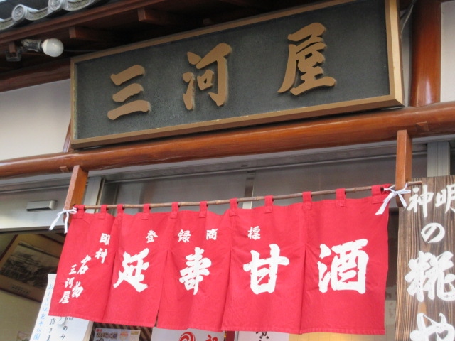 神田明神への参詣道にあるお店です。神田明神は甘酒が有名で老舗が2店舗あるのですが、その中の一つがこちらです。江戸時代からあるというお店で、赤い暖簾が目印のお店です。店内で飲むこともできますし、甘酒以外にもお土産なども売っていました。温かい甘酒はお米と麹で作られていて、あまくなくほっとする感じの味でした。