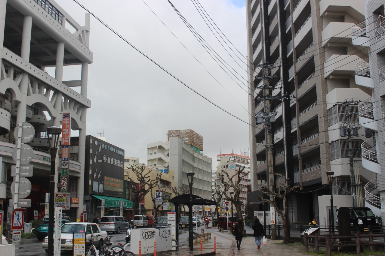 メイン通りの1つ・沖映通りとの交差するところに駅があります。