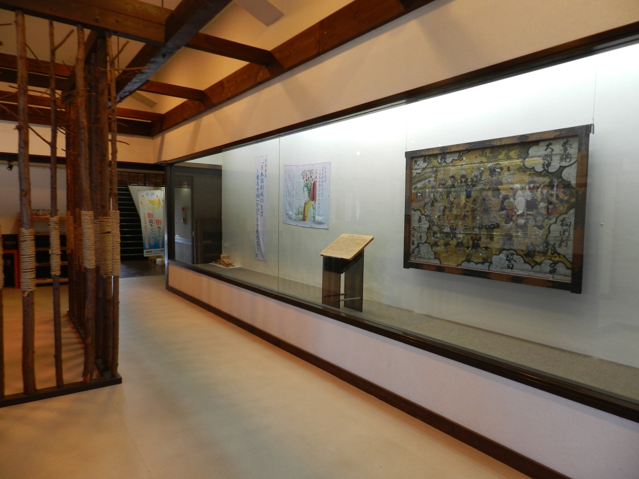 明日香村岡の万葉文化館の隣に建つ明日香村営民俗資料館。明日香村に伝わる農具や生活道具などの民俗資料が展示されています。入口には萱葺き屋根の大和棟農家が移築されて江戸時代の生活様式を目にすることが出来ます。資料館1Fにはカフェもあり便利です。