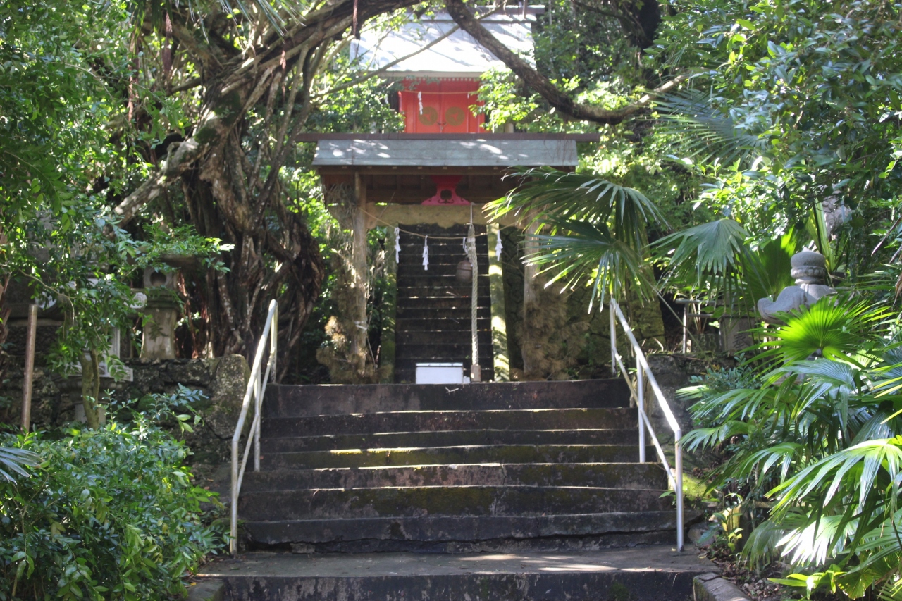 神社自体は普通の神社ですが、この神社の森には天然記念物であるダイトウオオコウモリが夜飛んでくるそうです。