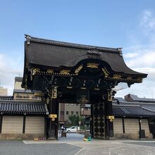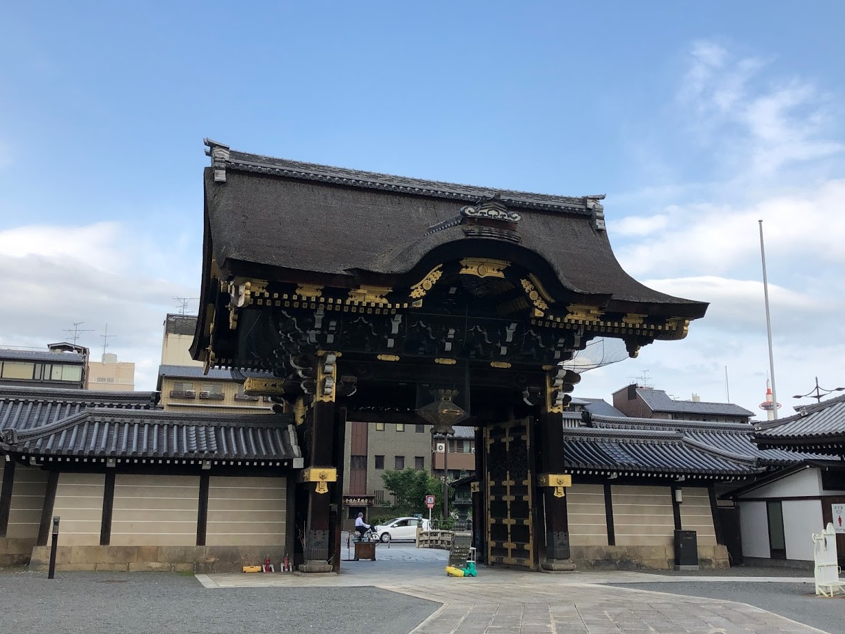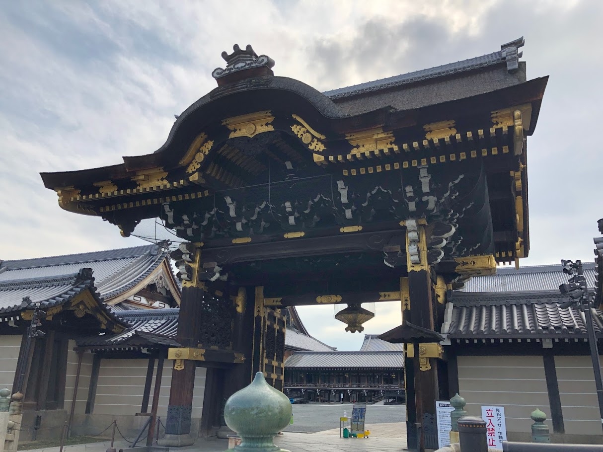 西本願寺の阿弥陀堂の正面にあたる部分にある門です。堀川通りに面した門は2か所ありますが、御影堂門に比べるとこちらは小ぶりです。他の建造物が巨大なので小ぶりに見えますが、近くで見ると屋根の組み方に絶妙なバランスが感じられ、迫力のある門でした。