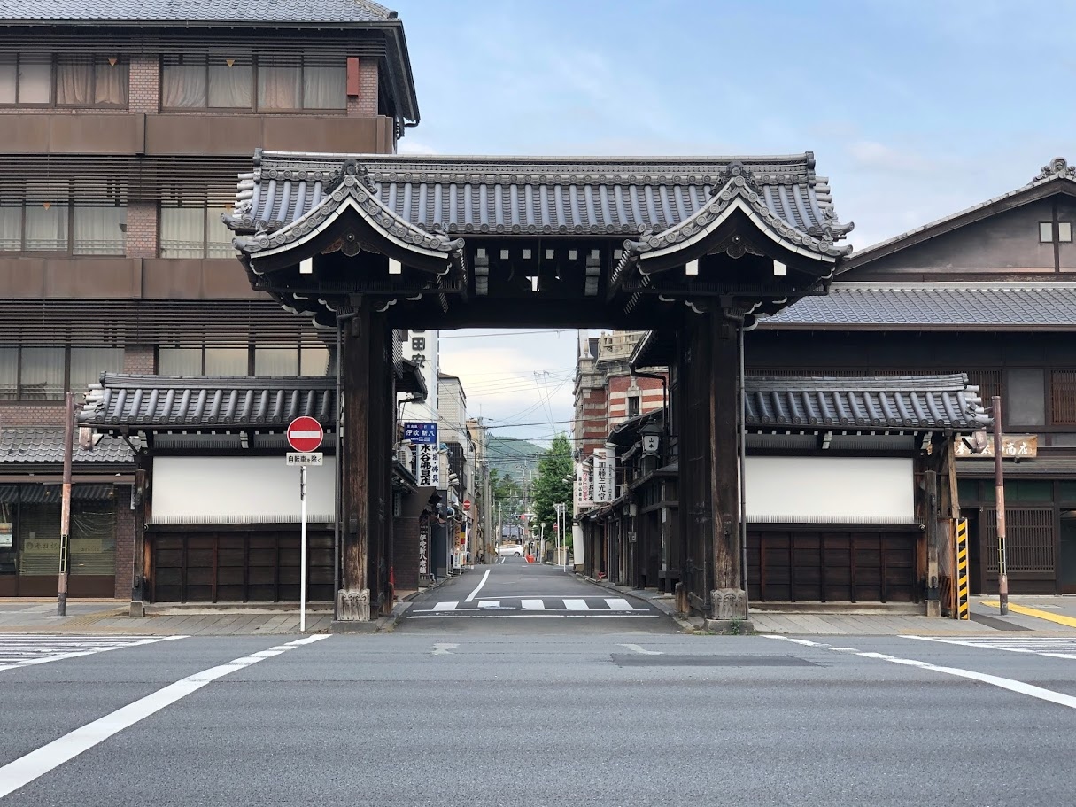 西本願寺の本堂がある部分とは少し離れて、道をはさんだところにある門です。車道が通っていて、交差点に面しています。堀川通りをはさんで見ると、どこか門の先はタイムスリップしたような不思議な雰囲気も感じられました。