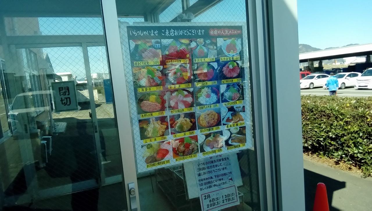 焼津港から徒歩だと30分くらいかかります。バスは、1時間に1本くらい(時間帯や曜日によって異なる)です。メニューは非常にバラエティに富んでいて、1000円以下のものもあります。小川港はサバがよくあがるようで、サバの照り焼き丼やサバの天丼などもあります。そのほか、海鮮丼、まぐろ丼、まぐろカツなどもありました。私は海戦丼をいただきました。結構賑わっていますが、回転が速いのと、スペースが広いのとで、混雑しているという印象は受けませんでした。