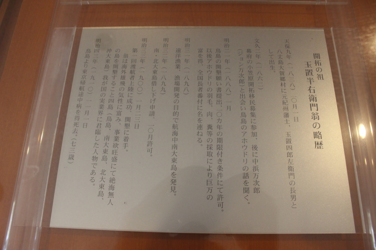 無人島だった南大東島を開拓した玉置半右衛門の記念碑です。