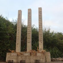 南大東島のメインの港である西港から上り坂の道路を少しいったところに3本の柱の記念碑があります。