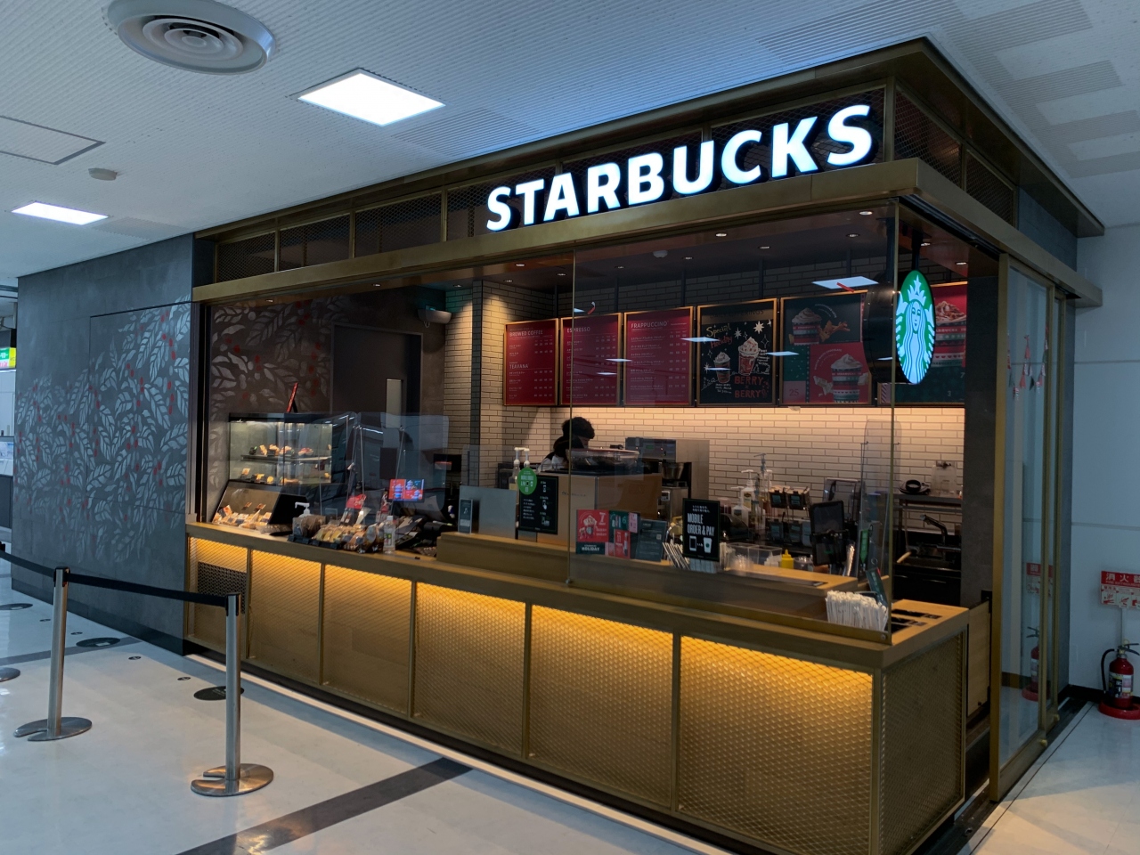 第2ターミナル到着ロビーにはこの北側だけでなく南側にもスターバックスがあります。どちらもカウンター形式で店内に座席はないので、近くのベンチで飲む形になります。