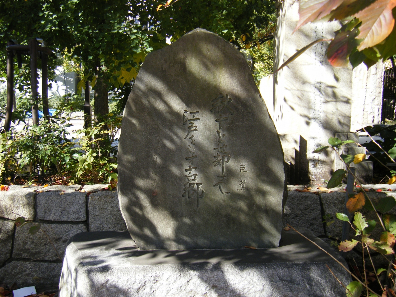 2020年11月に川崎を散策した際に立ち寄りました。JR川崎駅から徒歩10分ほど、国道15号線沿いにある稲毛神社境内に松尾芭蕉の句碑があります。石碑には「秋十とせ 却って江戸をさす故郷」と彫られています。いつごろ作られた石碑なのかはわかりませんでしたが、比較的読みやすくはっきりと彫られていたのでそれほど昔に作られたものではないのかもしれません。いまいち意味はわからなかったのですが、芭蕉が江戸を出発するときに詠んだ句のような感じがありますね。意味などの案内板があるとより良い史跡になると思うのですが。