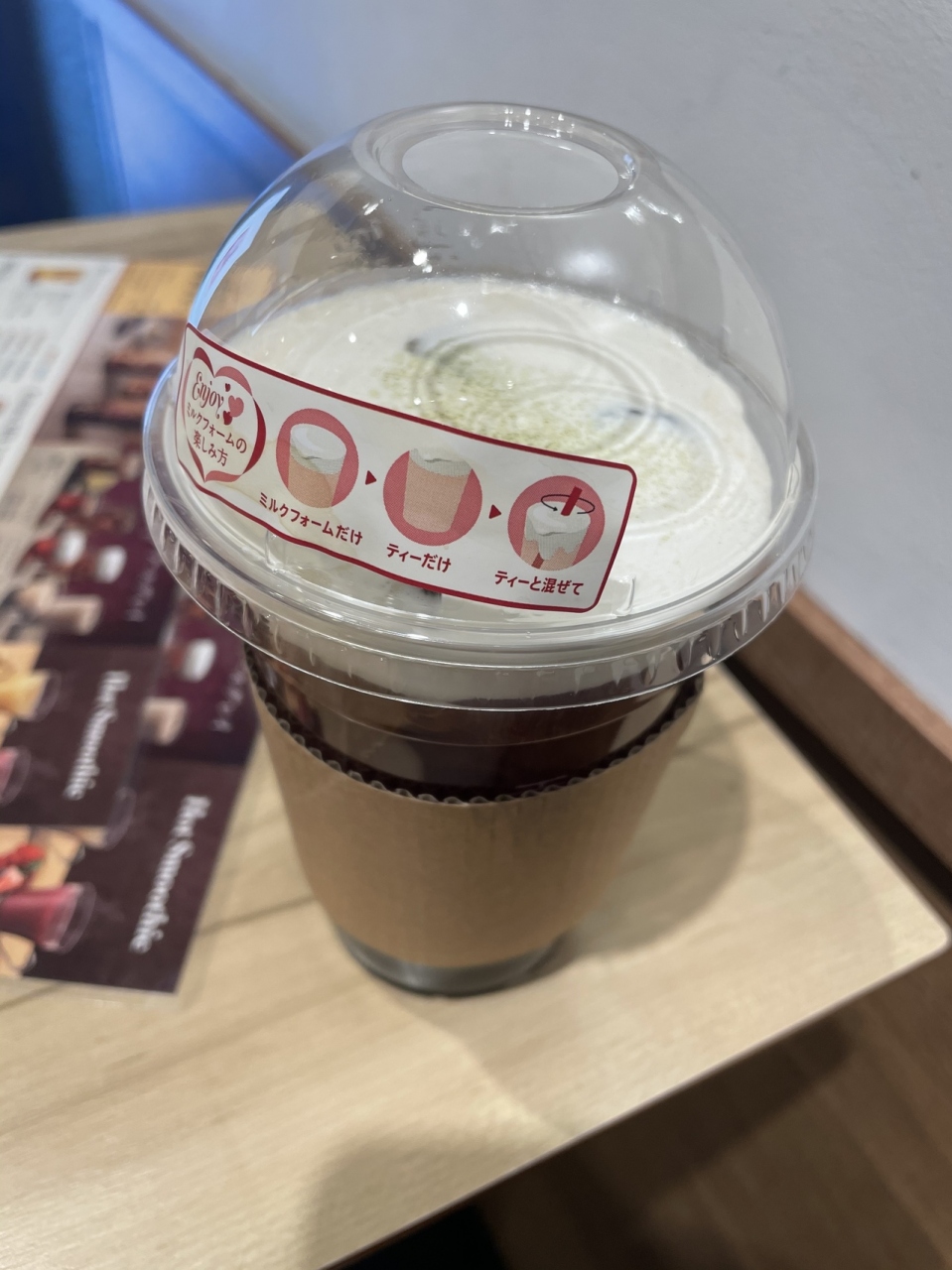 今の時期に配布されている100円のお試しクーポンを使って、ミルクフォームとタピオカトッピングしても250円で飲めます。さすがゴンチャ、お茶も風味が高く、タピオカももちもち、ミルクフォームもこくがあって美味しい!