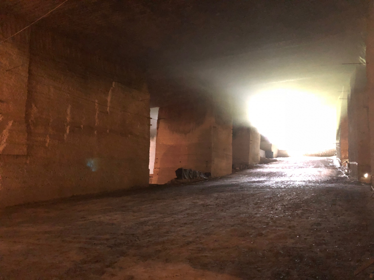 大谷石の採掘跡を資料館にしたものです。石を四角に切り出し、下へ下へと掘っているため、床から天井までかなり離れている広々とした空間が、地下に広がっています。直線で作り出された石の床、壁、天井は、地下要塞や地下居住地、地下教会などを彷彿とさせ、神秘的な雰囲気があります。そのため、ドラマやMVの撮影にもよく使われるようです。