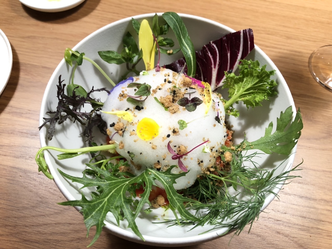 パリでの代表作といわれるサラダも出てきて嬉しい限り。店内もスタイリッシュで楽しいひと時でした。ただ、サービススタッフはまだまだこれからという感じです。