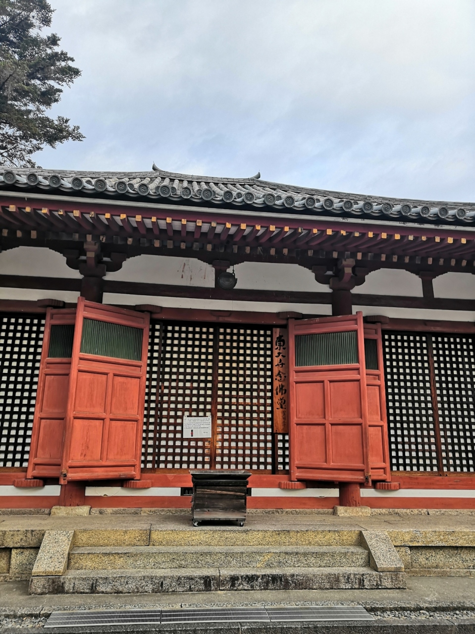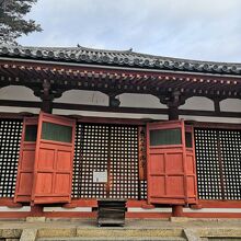 大仏殿からですと、二月堂・三月堂のエリアに向かう途中にあります。東大寺鐘楼の東側すぐの位置です。後で知ったのですが、隣接する御朱印授与所に申し出ると内部を無料で拝観できるそうです。ちょっと朱色なのがこのお寺では珍しいですよね。