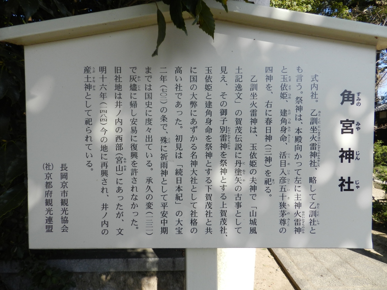長岡京市の住宅街に鎮座する神社。旧社格は村社、式内名神大社「山城国乙訓郡乙訓坐大雷神社の論社です。主祭神は火雷神です。承久3年(1221)承久の乱で焼失し、長らく復興されなかったが文明16年(1484)現地に再興され、この地井ノ内の産土神とされたそうです。この周辺には歴史ある神社、寺院、古墳が多くあり散策には良い地域です。