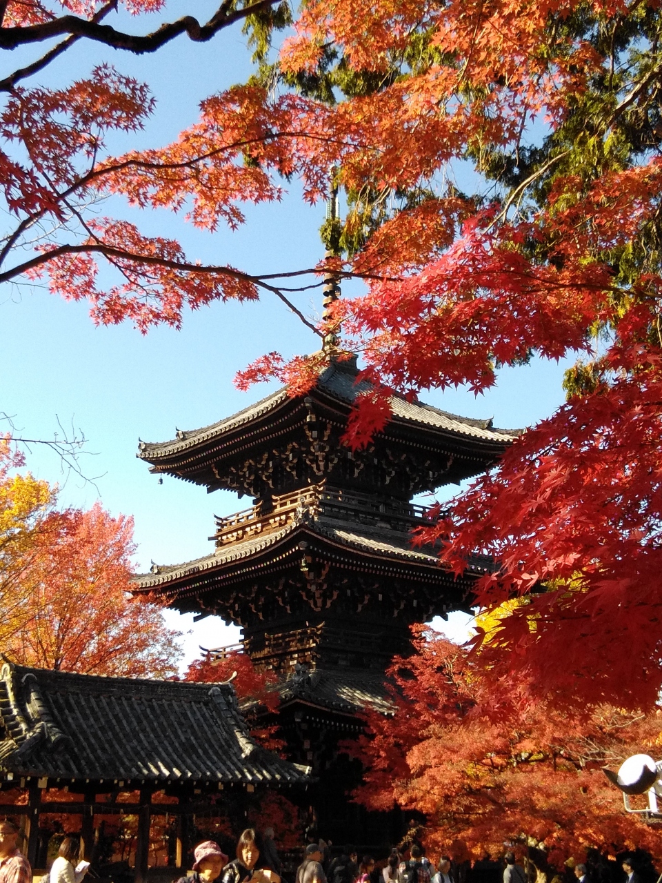 真如堂は境内のきれいな紅葉を無料で散策できるので、天気のいい日にはとても行きたくなる場所です。紅葉シーズンには手水の場所にも花が飾られていてとても雰囲気を感じることができます。境内には紅葉と一緒に写真を撮ることのできる三重塔もあります。
