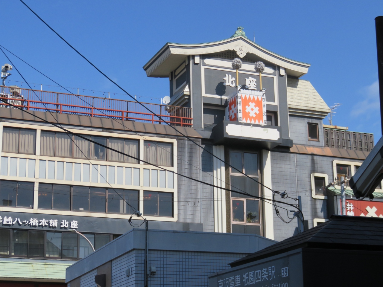 京都は南座の正面北側、四条を上がったところに、昔北座があった跡ということですが、今では結構立派な井筒八ツ橋「北座」のビルが立っています。
