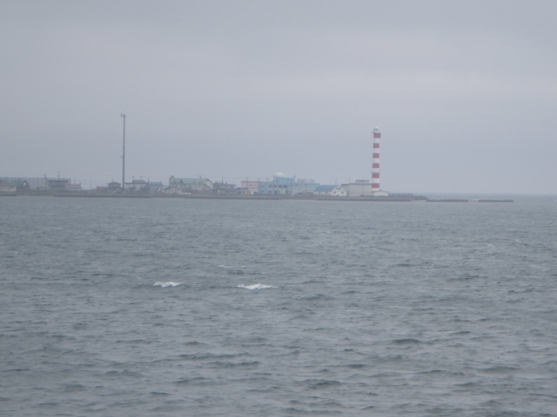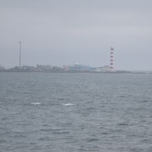 礼文島から稚内に向かうフェリーに乗っていて、もうすぐ稚内に入港かと思って景色を見ていると、赤と白の縞模様の煙突のような物が見えました。工場の煙突かと思ったら、稚内灯台でした。ノシャップ岬に建つ北海道で1番、全国でも2番に高い灯台とのことでした。