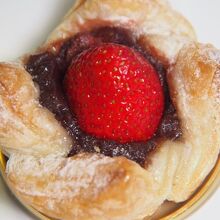 苺の甘酸っぱさと、小豆の甘さと同時に、パイ生地のサクサク感を味わえる。