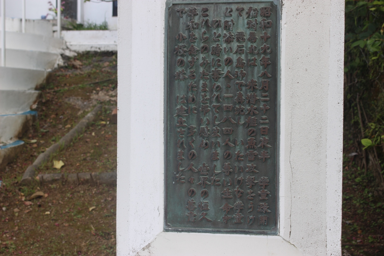 対馬丸の犠牲者を慰霊する「小桜の塔」、薩摩による琉球王国侵略に抵抗した謝名親方(大河ドラマ「琉球の風」では江守徹さんが演じていました)の石碑などです。