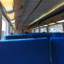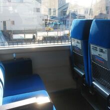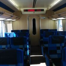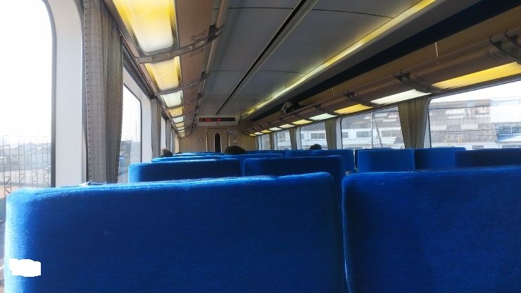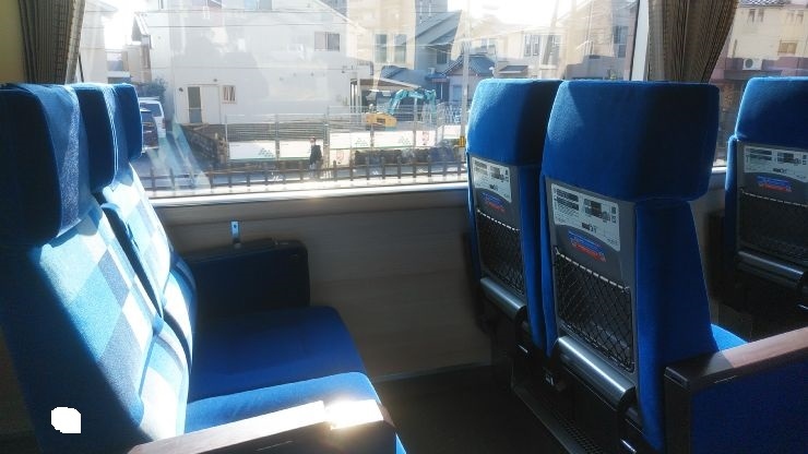 Wi-Fiはなかったが、2席に1つの割合でコンセントはあり設備はまずまず。海をイメージしたカラーリングの車内はゆったりとしていて、なかなかの移動空間だった。