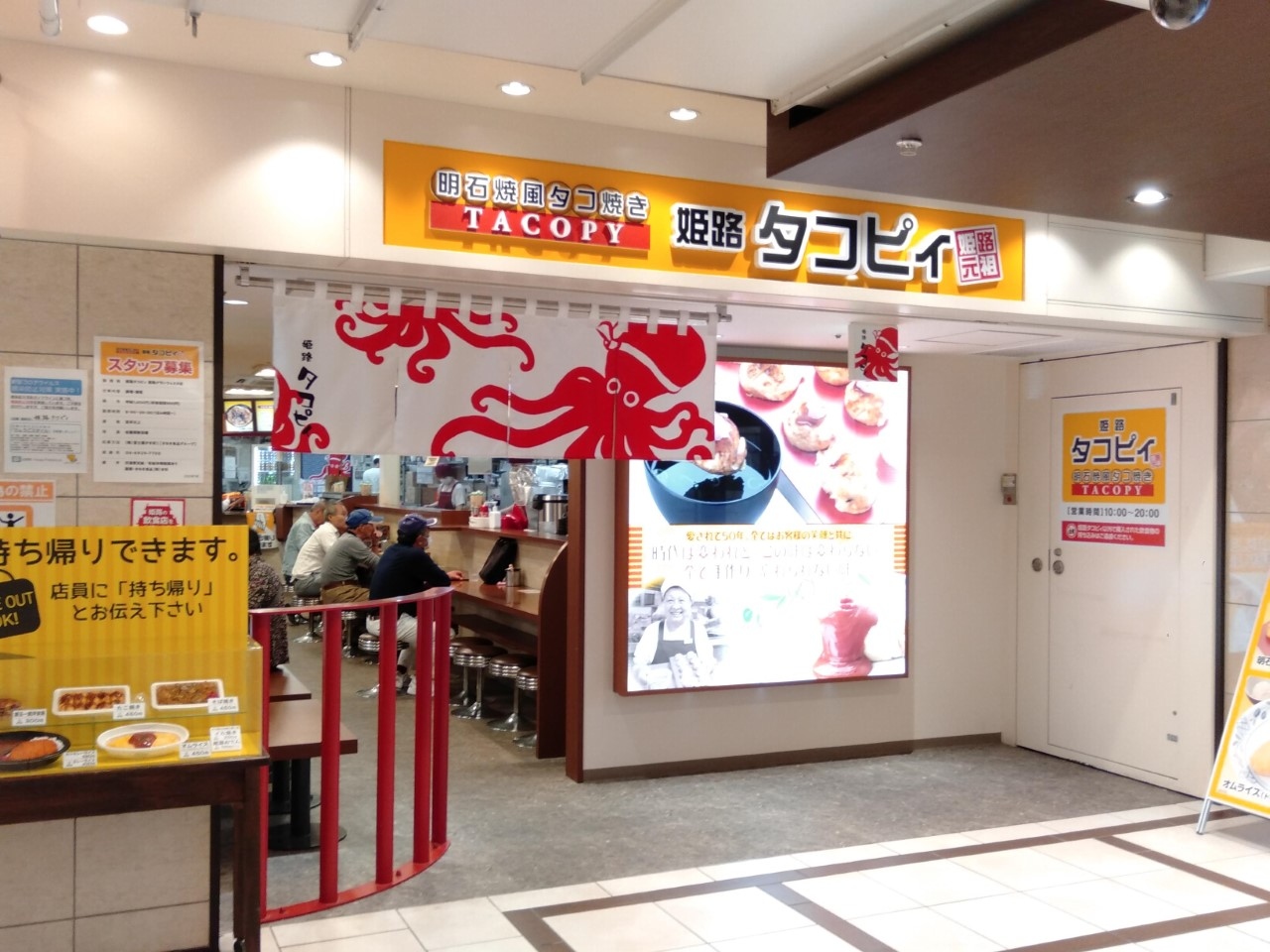 明石焼風たこ焼き、いか焼き、オムライスや焼きそばがあります。