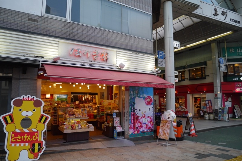 おみやげ屋さんです。キャラクターグッズを前面に押し出しているお店ですが、意外とそれ以外のものも多いです。よさこい祭りの楽器(?)のB品が安く売っていたり、地元名産の各種柑橘ドリンクが冷えていたりします。かわいらしいパッケージのお菓子も多かったです。