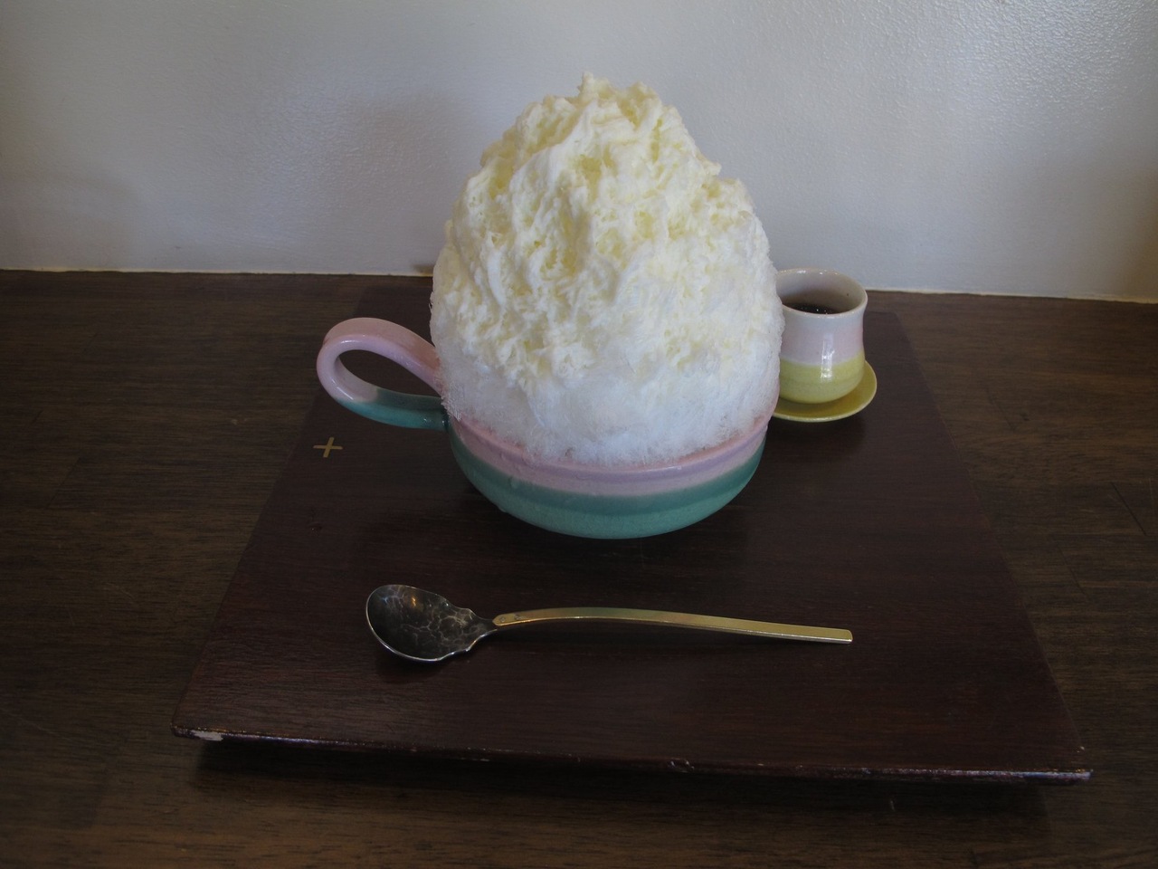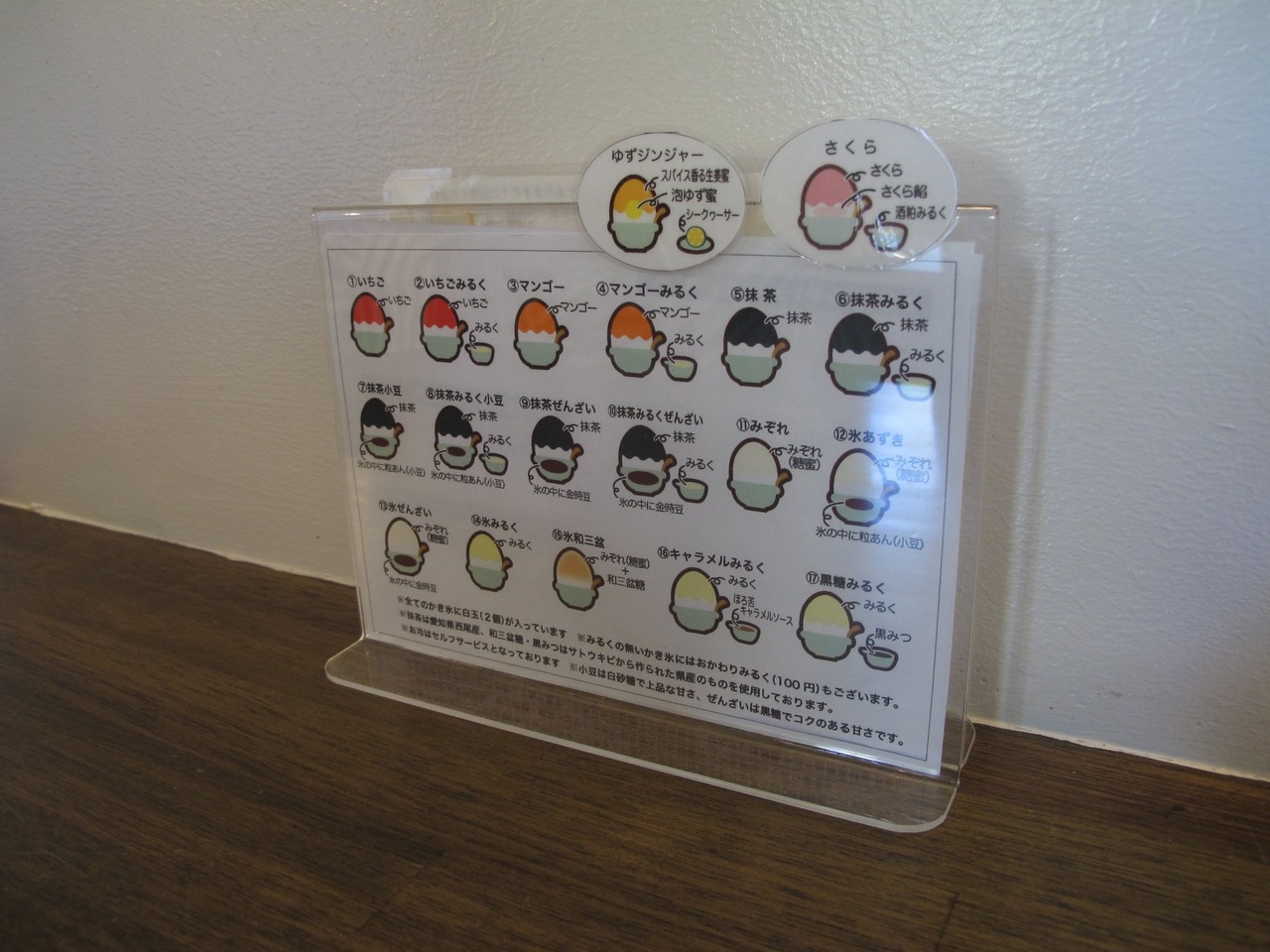 陶芸の作品も飾ってある、かき氷屋さん。種類がたくさんあって悩んでしまいます。季節ものもあります。みるくやソース系は別添えにしてくれているので甘さを調節しながら食べることができます。この時食べたのは黒糖みるく。季節ものはさくらでした。人数が多いとシェアできますね。