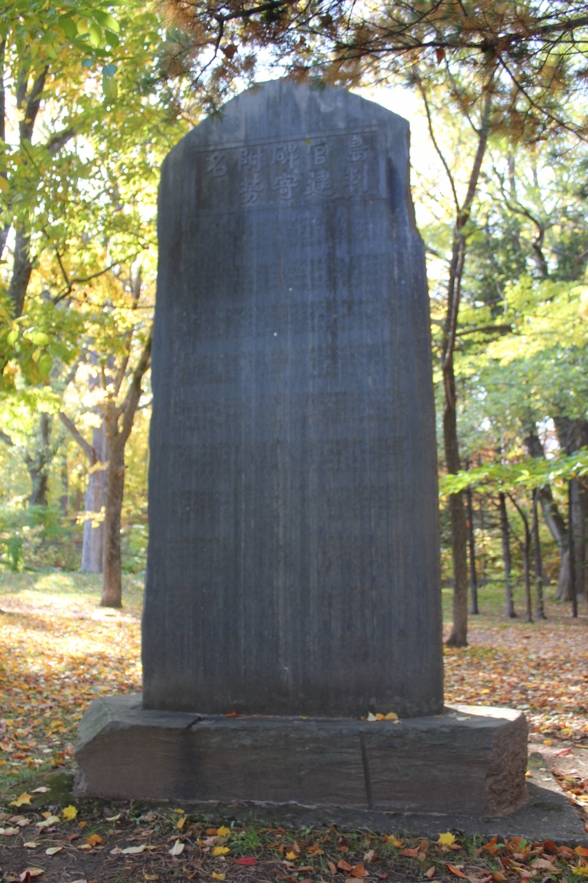 円山公園内には上部に「島判官紀功碑」と刻まれた大きな記念碑があり、島義勇さんの功績が記されているようですが、字体が薄くて良く読めなかった。