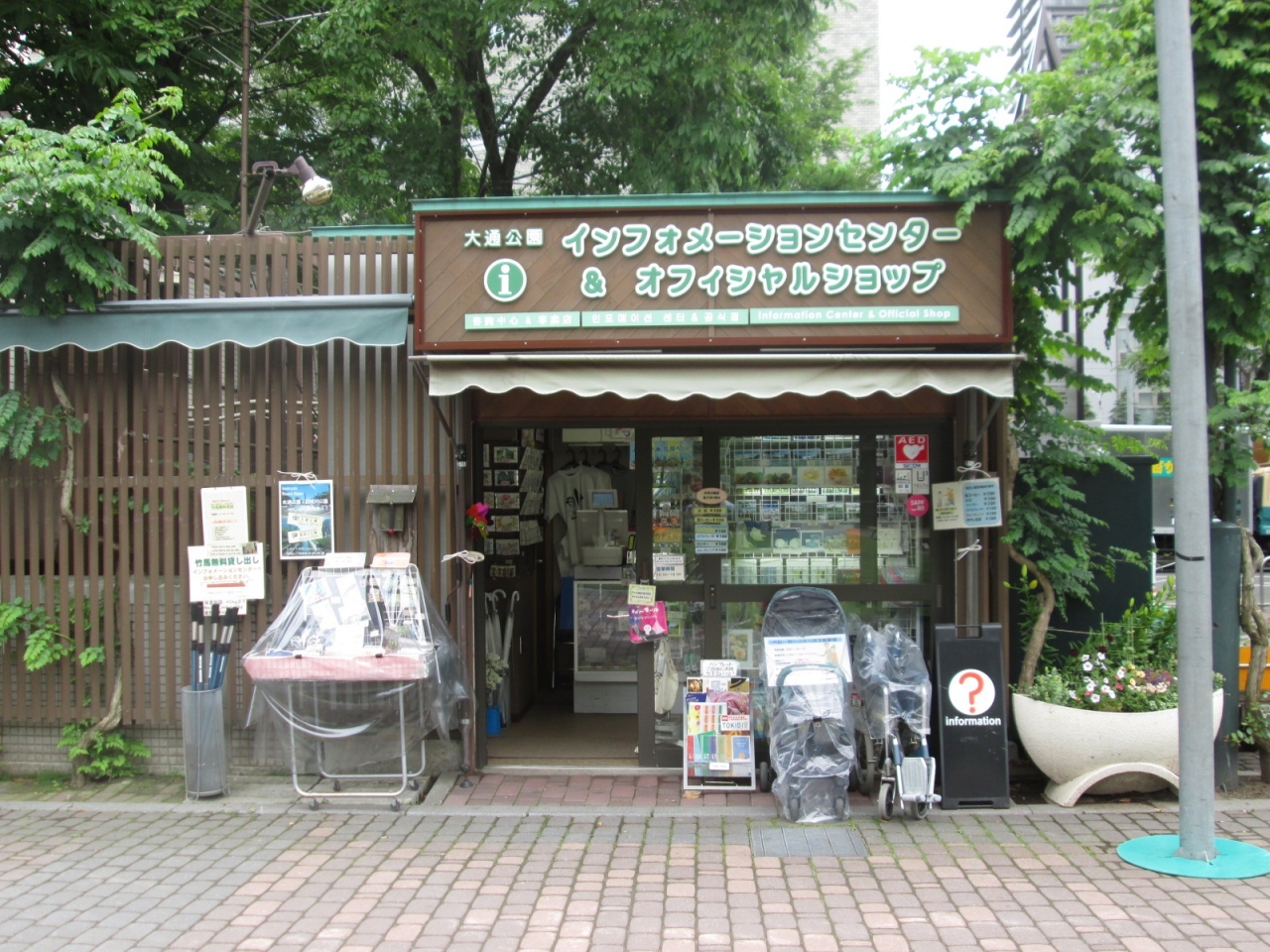 大通公園の西7丁目にあり、外観はプレハブのようなこじんまりした建物で、観光案内所と公式グッズを販売しているほか、車いすの貸出も行っています。