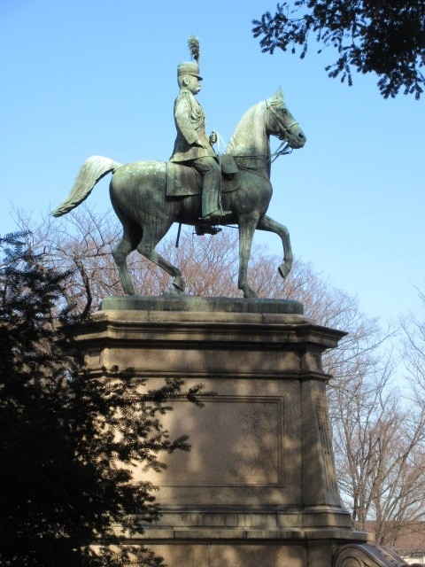上野公園内にある銅像です。場所は上野の大仏様の少し先あたりで、ちょっとした広場っぽい場所です。台座も含めて大きな銅像で、馬に乗っていてりりしい感じでした。明治維新の際に戊辰戦争で活躍された方で、日本赤十字にもかかわる重要人物の銅像です。
