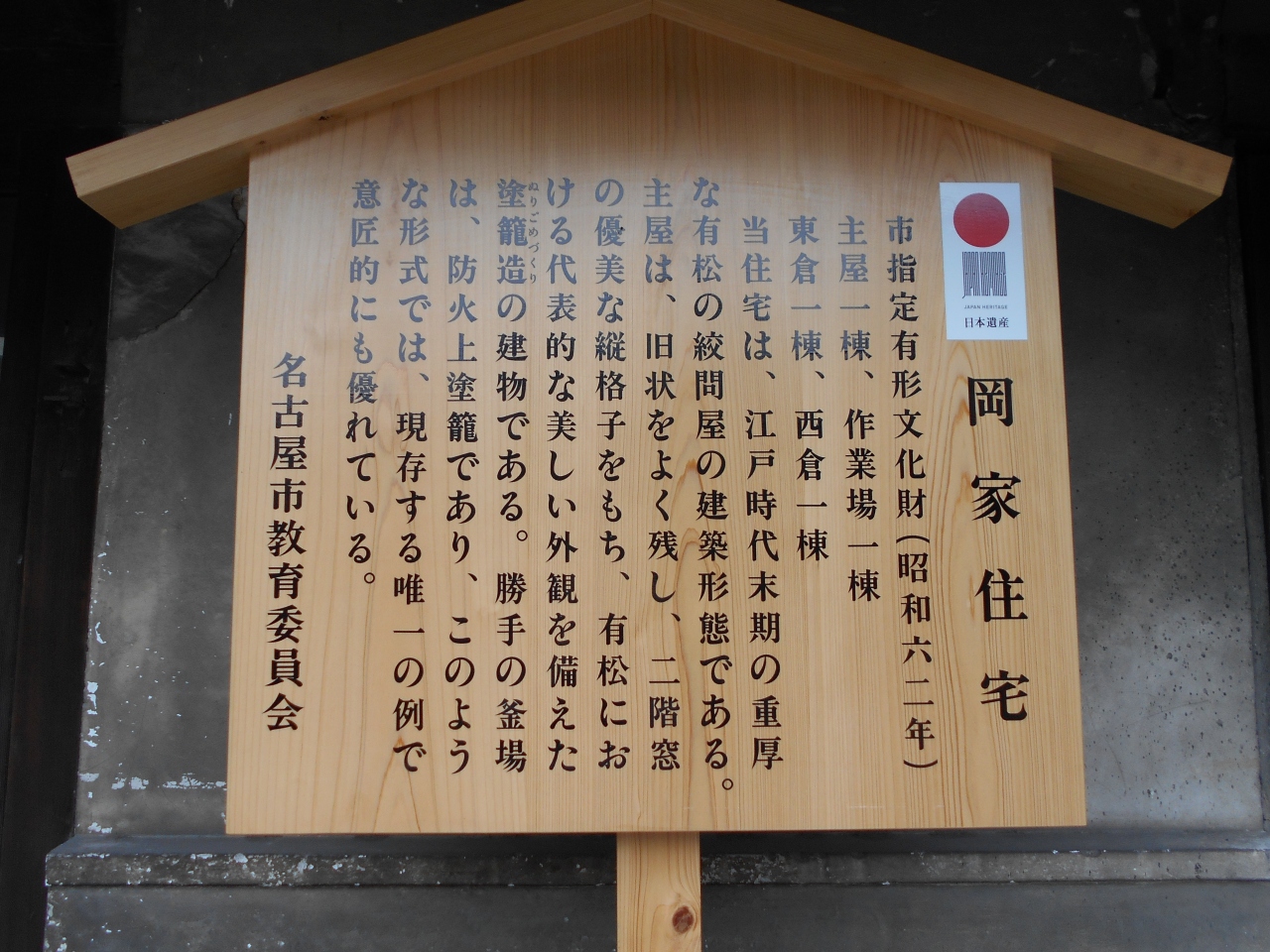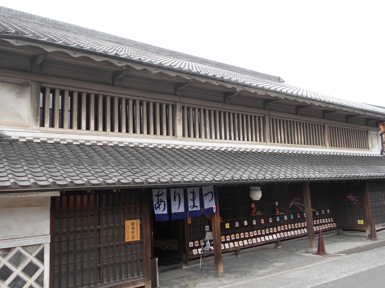有松東海道沿いで交差点の西側に建つ市指定有名文化財の町家。主屋の間口は有松の伝統的建造物の中で最大で、2階屋根の軒裏の垂木部分が漆喰で波型に塗られているのが特徴です。これは防火の機能があるとされています。今も有松の暖簾が掛かって美しいです。土日は無料で建物を公開しているようです。