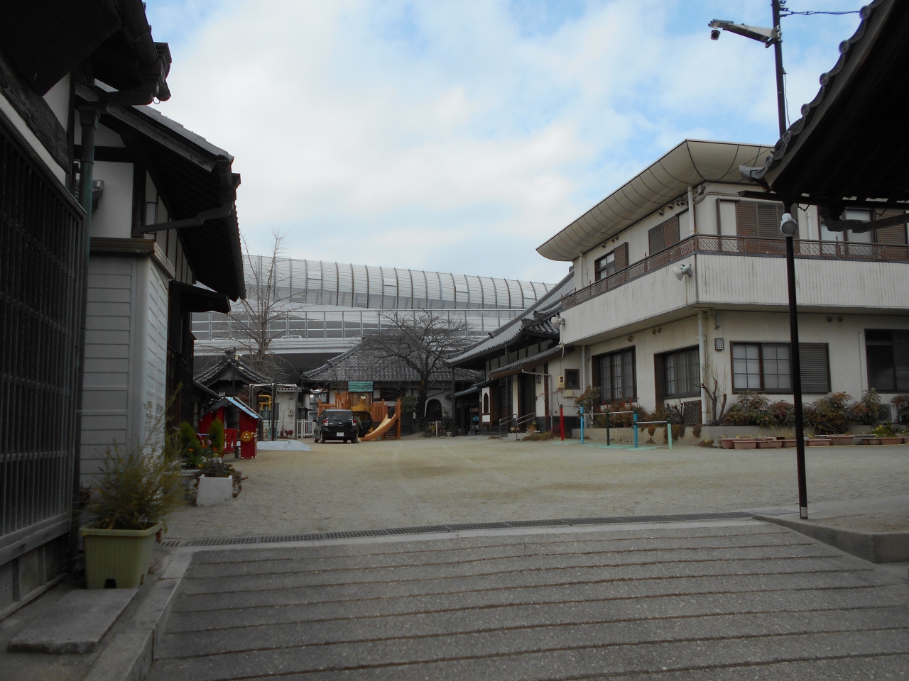 有松東海道の西端に建ち、境内東は有松天満社参道に面する曹洞宗寺院。創建は文禄年間(1592~95)とされ、元は隣の鳴海村にあり宝暦5年(1755)祇園寺と改め現地に移転したとのこと。境内は幼稚園になっているようです。南側が東海道に面して漆喰壁が続き美しい景観を保っています。