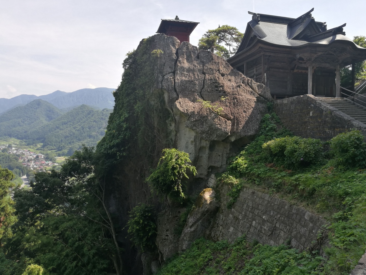 切り立った崖に張り付いている宝珠山立石寺