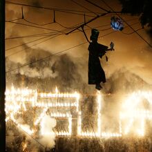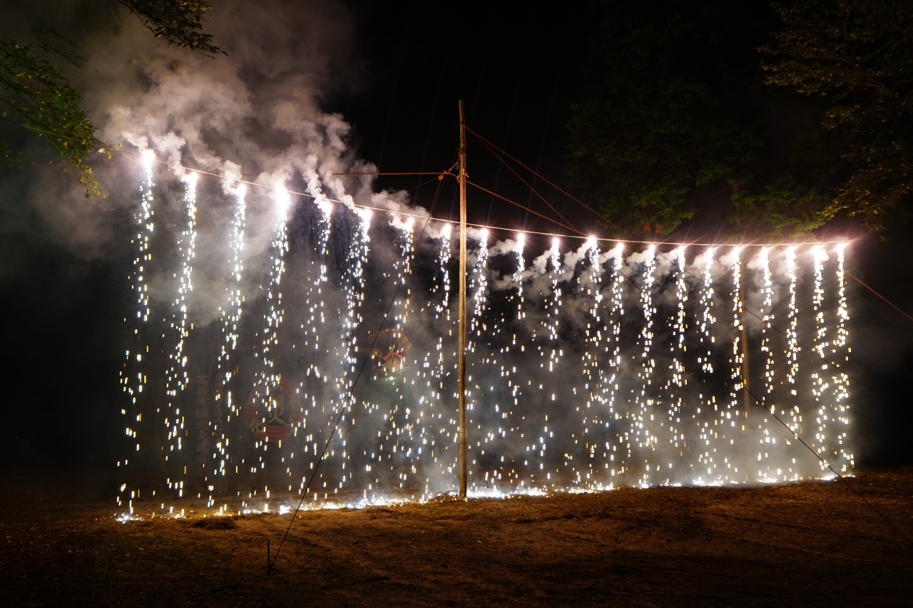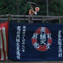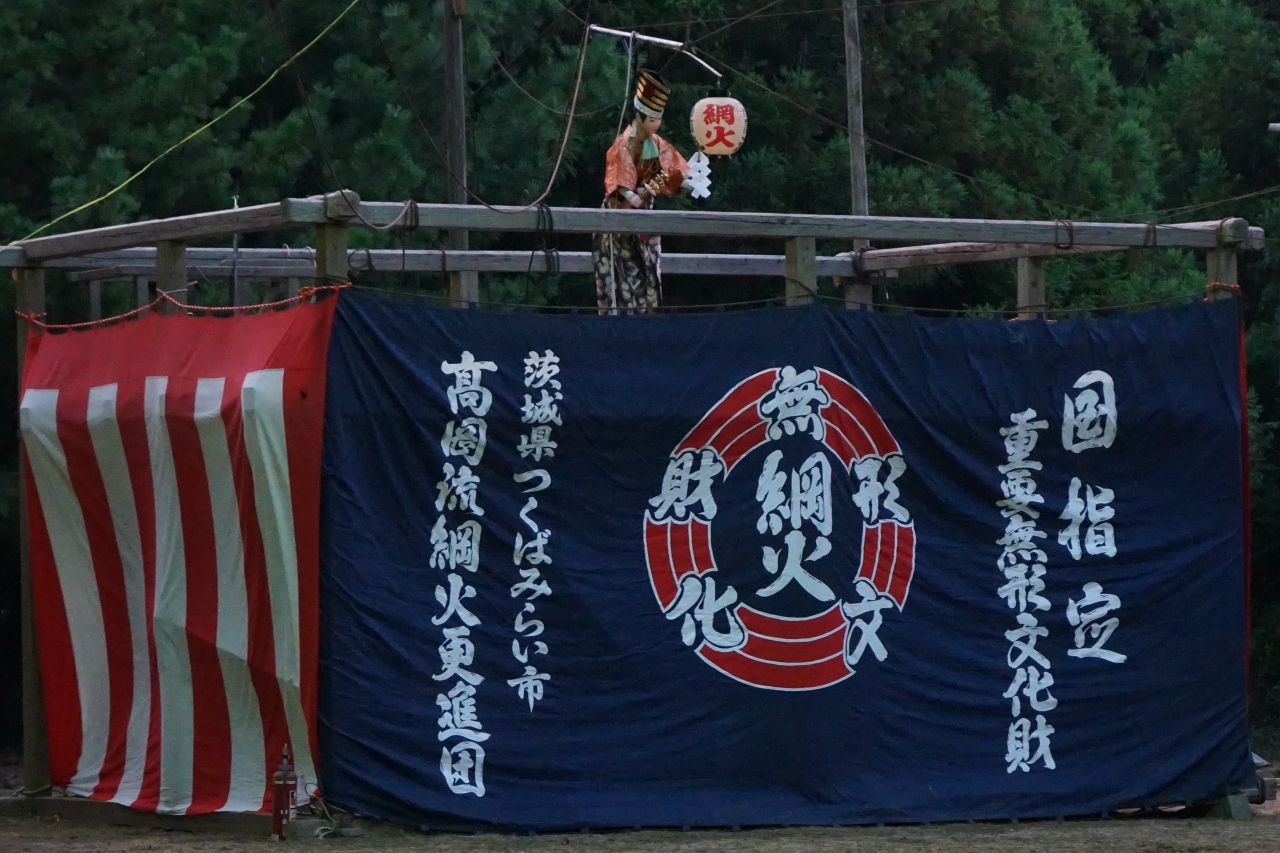 高岡愛宕神社の祭礼である高岡流綱火。あやつり人形と仕掛け花火を結合し、空中に張りめぐらせた綱を操作し、囃子に合わせて人形を操る伝統芸能で国の重要無形民俗文化財。「あやつり人形仕掛花火」と呼ばれてる。伝統ある古風な雰囲気の中でロケットが登場するのは何とも不思議なアンバランス感がありとても面白い。