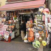 御徒町駅から上野駅方面へJR線路の東側の道を歩き、右の路地に入ったところにあります。店頭に飾られている各種マスクが目印です。店幅は狭く店内も狭いです。店頭にマスクの他、バービー人形、リカちゃん人形、プラレールなどが並んでいました。近々孫にプラレールを買う約束をしていたので、希望の品があればと思い寄ったのですが、種類が限られてなかったです。マスクは何に使うのかなと思っていたら芸人が使っていた物がありました。マスクに興味のある方は覗いてみてはいかがでしょうか。