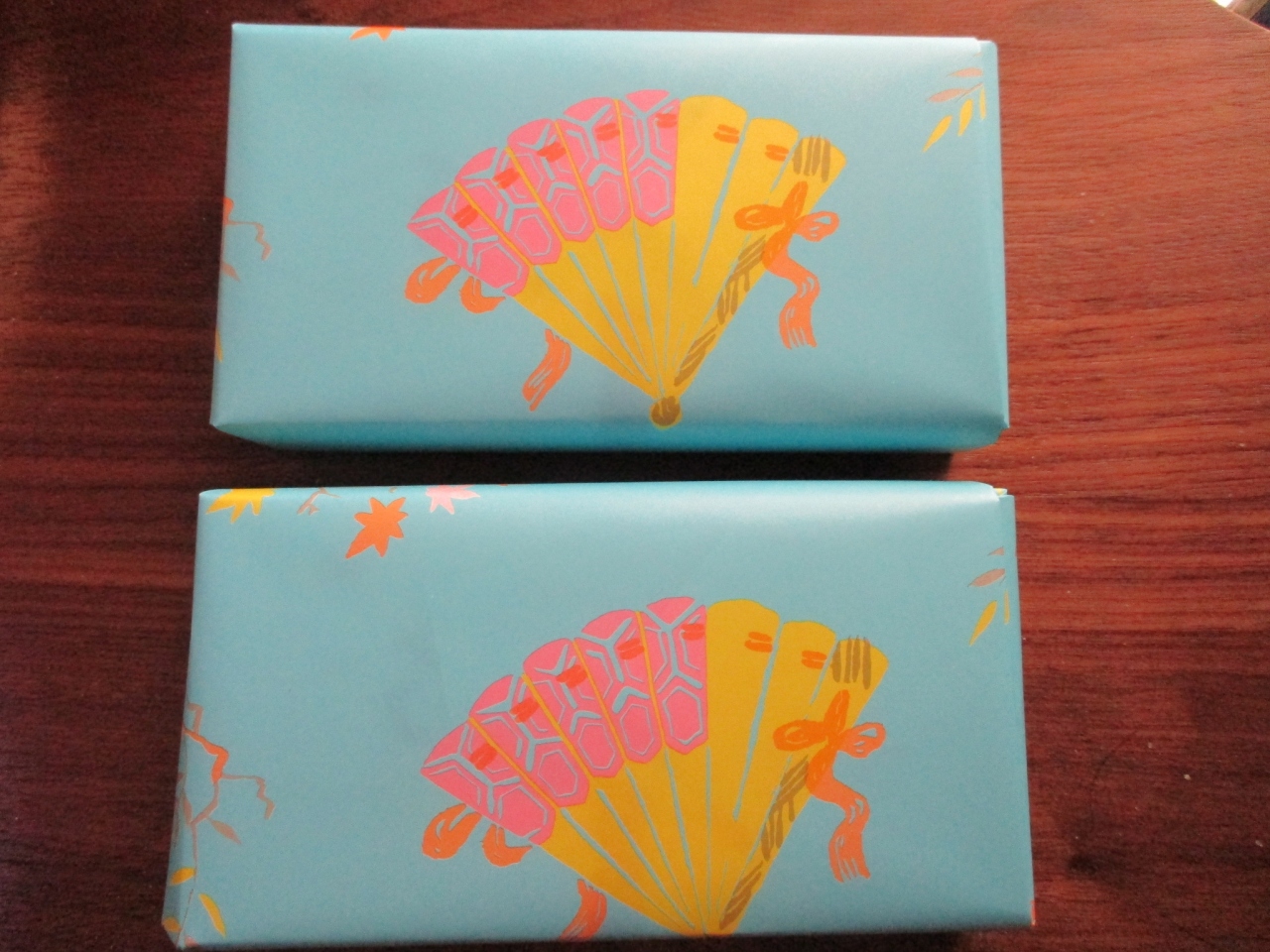 京都高島屋の地下食料品売り場、阪急河原町駅側の入り口近くに和菓子の「末富」があります。京都の老舗のお店です。以前本店で購入した「京ふうせん」という色や形がきれいな軽い食感のをおせんべいを手土産用に購入しました。包装紙がきれいなことでも有名なお店です。