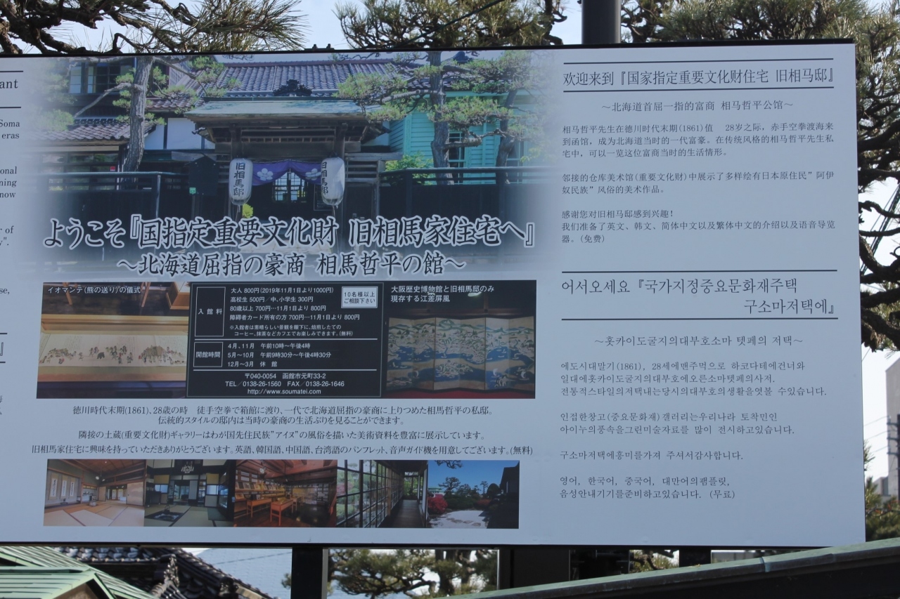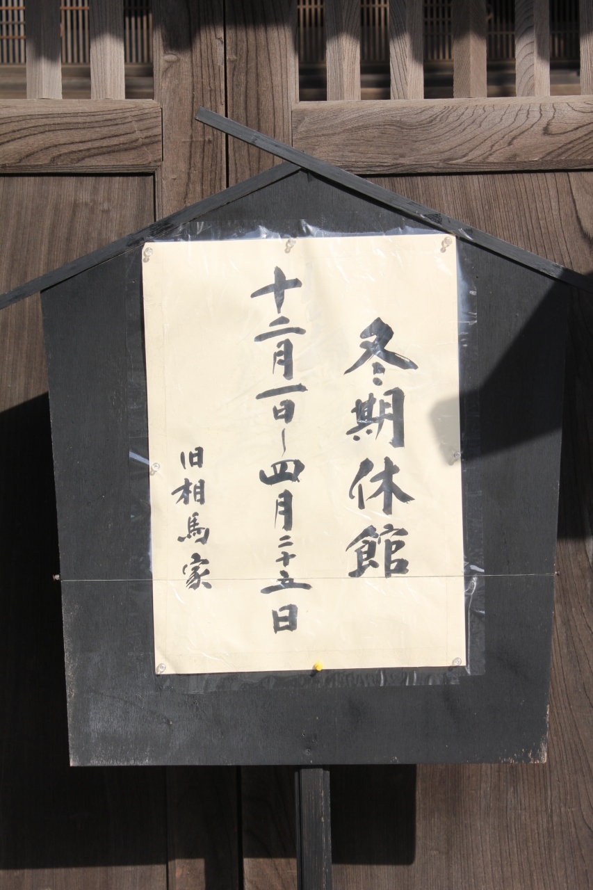 訪れた時は冬期休館中(12/1-4/25)で中に入れなかったが説明板があり、一代で屈指の豪商に上りつめた相馬哲平氏の私邸で、国の重要文化財に指定されているそうです。