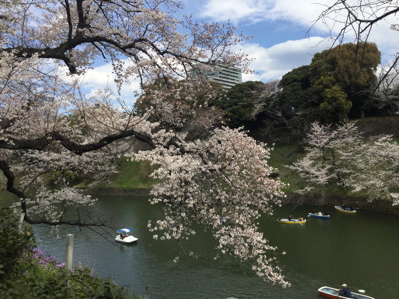 ジョギングコースにもなっている皇居周辺。日本でも人気な桜の名所である。ボートに乗りたい場合は並んでいるので時間がかかることが予想される。ボートに乗らない人は昼間ではなく朝や空いている時間にみてさくらを楽しむのがオススメ