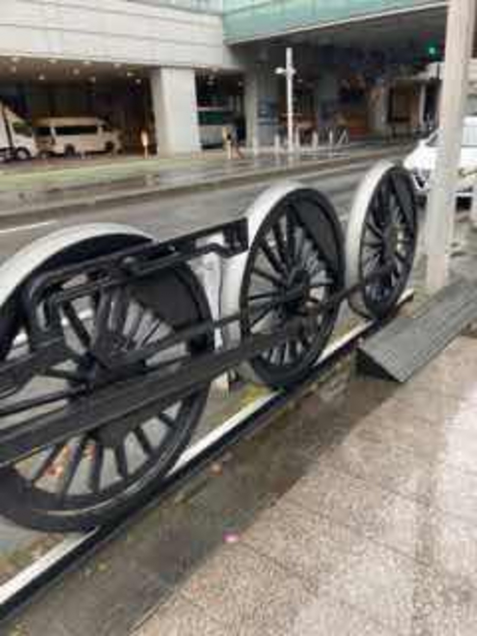 さいたま新都心駅のけやき広場のすぐ下の道路の脇にある車輪のモニュメントです。
