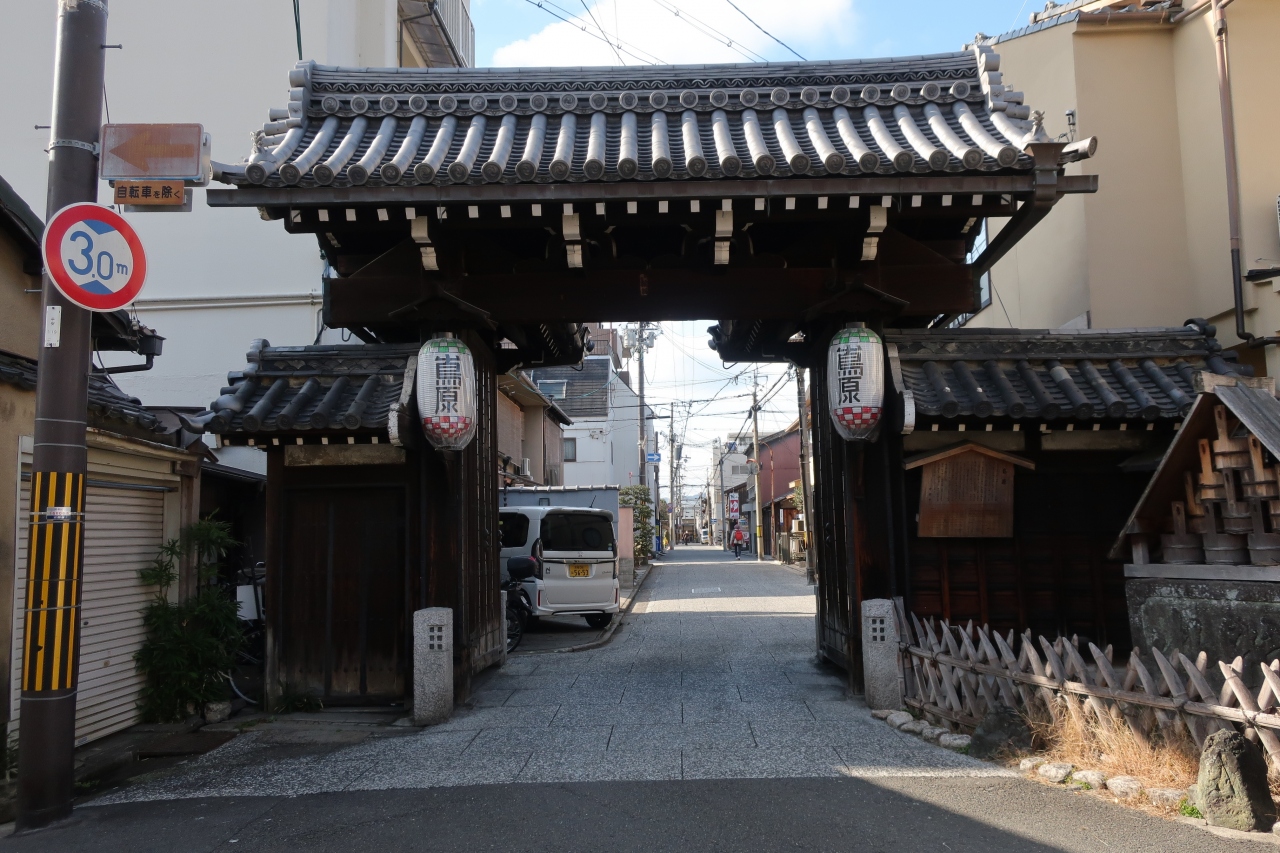 神社の鳥居とも、仏閣の山門とも異なる「区切り」の施設だ。遊郭と一般社会を区別するように遊郭の周辺には高い塀がめぐらされていたというが、その出入り口がこの島原大門だ。廓と一般社会の境界を示す施設として独特の存在感がある。そばには柳の木があり、いくつもの物語を有していそうな雰囲気があった。