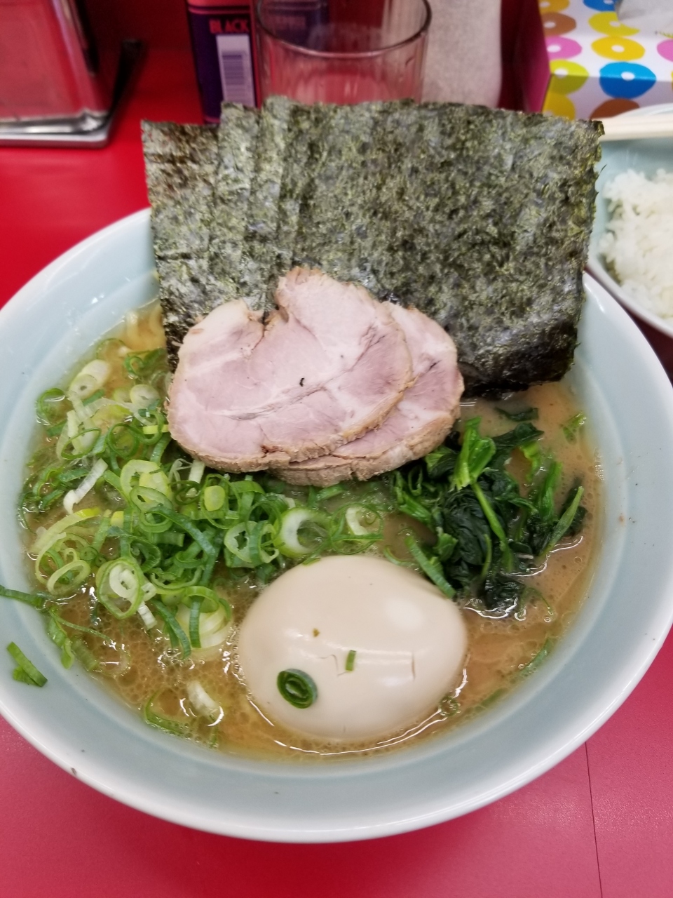 ラーメンですが、家系ということでほうれん草が入っています。
