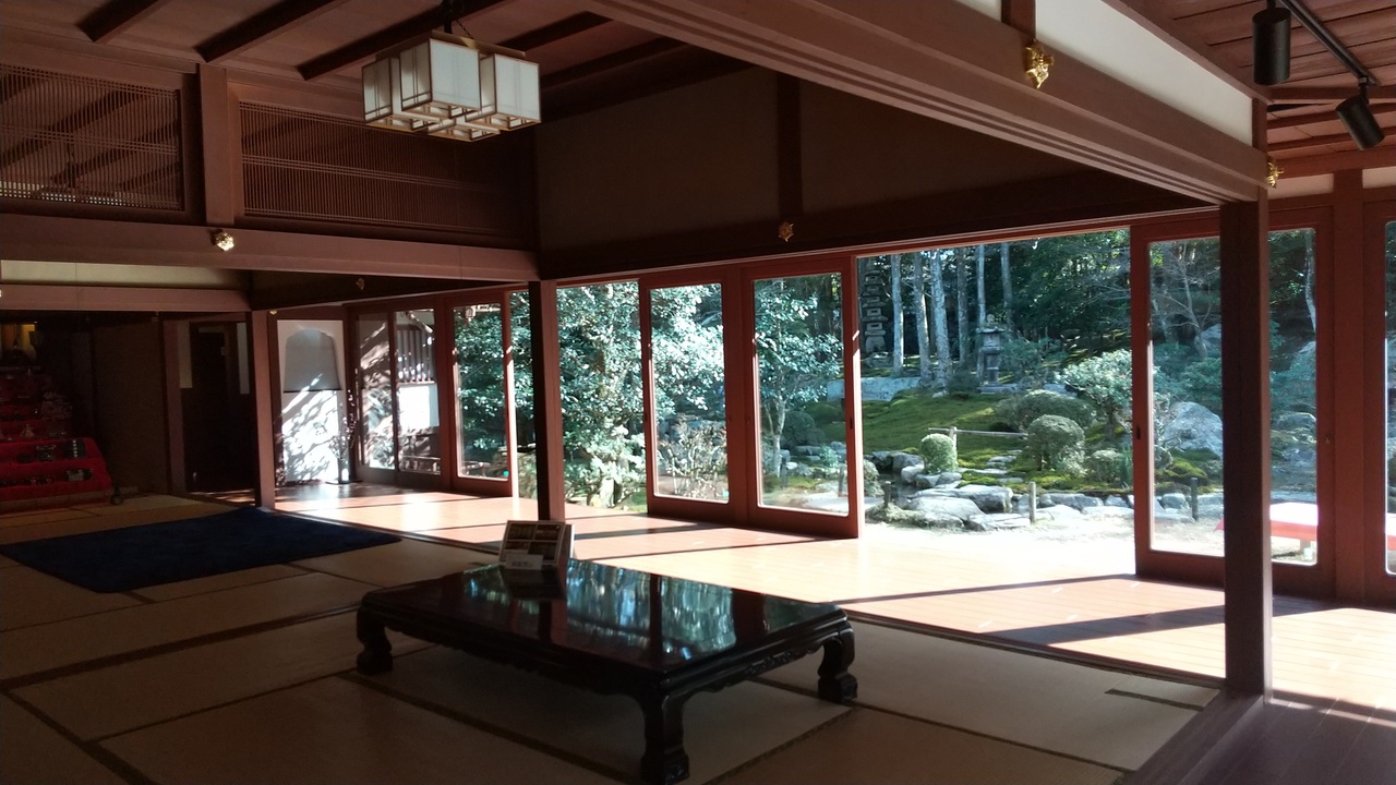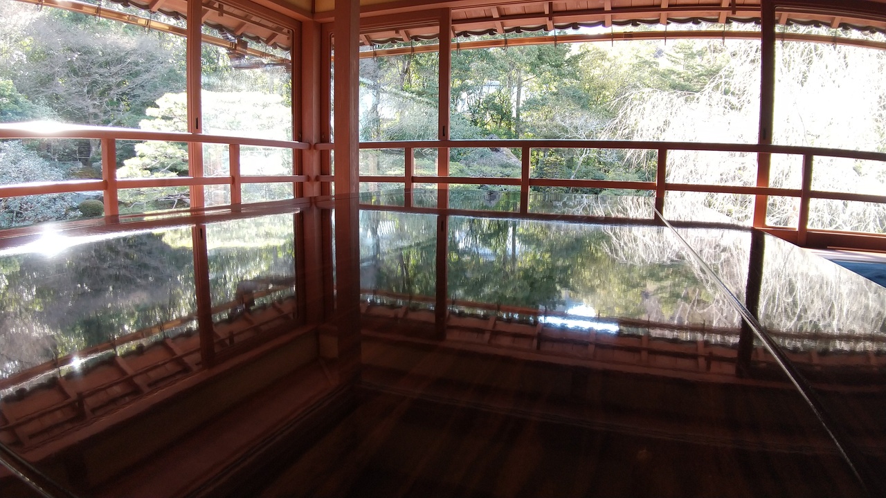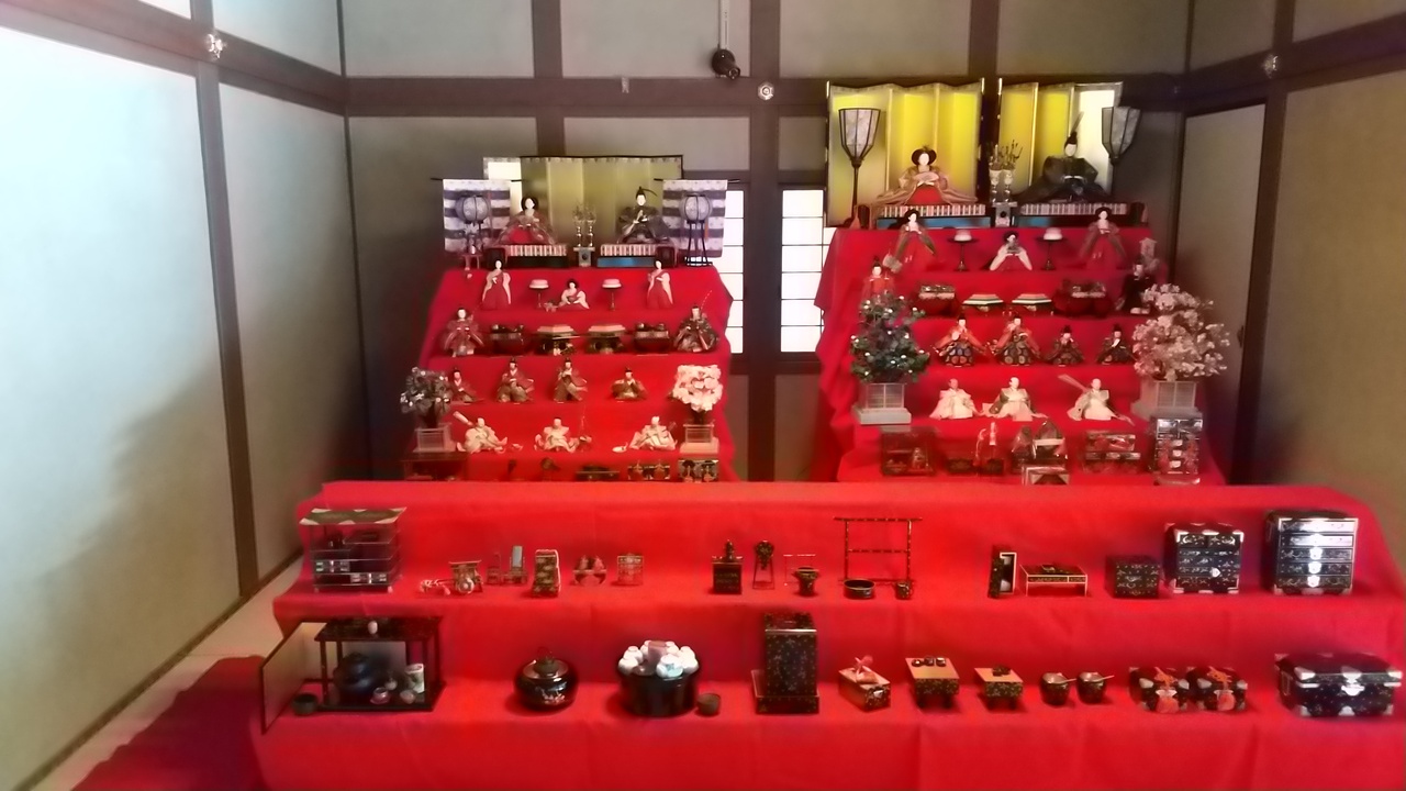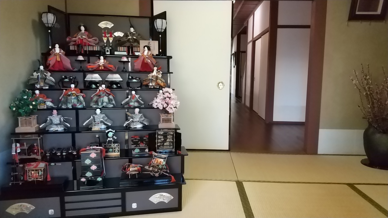お雛様が玄関、一階、二階に飾られ春を感じました。いづれの部屋にも座卓がありリフレクション映像を撮られる案内があり素敵な写真を撮る事ができました。