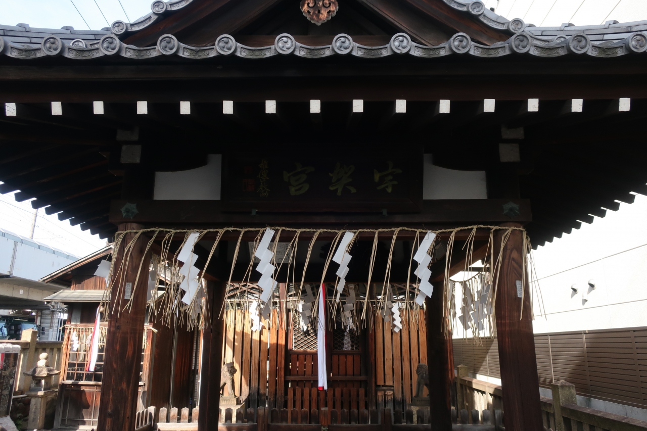 ここを訪れる前にも下京区で住吉神社にばったり出会っていた。この辺りは〝住吉神社率〟が高いのか。現地の説明版によると、島原の豪商宅で祭られていた「住吉神社」をこの地に勧請したのが始まりだという。そういえばもう一つの住吉神社も貴族宅に勧請されていたものを地域で祭るようになったのが開創の起源だったから、こうしたケースが多いのかもしれない。往時は島原の端から端まであるような大きな神社だったが、現代は西門跡付近にこじんまりと鎮座している。太夫の練り歩きなど奉納神事もあったそうだから、遊里の守り神として信仰を集めていたのだろう。遊女の悩みだけでなく、遊郭を訪れる様々な人がものすごく多様なお願いをしたはずだ。